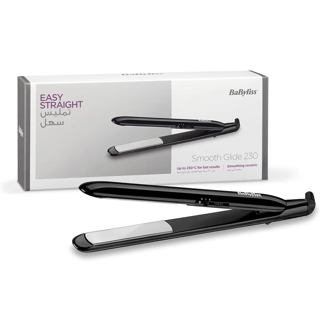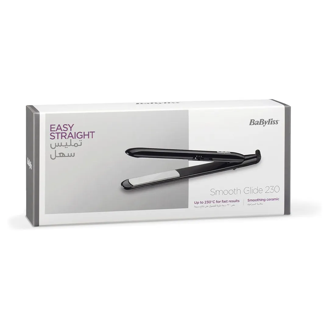 اتو مو BaByliss Smooth Glide 230 ST240SDE یکی از مدل‌های میان‌رده تا حرفه‌ای برند BaByliss است که با تاکید بر «لغزندگی بالا» و «نتیجه صاف» طراحی شده است. در توضیحات این محصول آمده است که این دستگاه «Top performing straightener with up to 230 °C high heat and smoothing ceramic plates to give a super smooth finish».