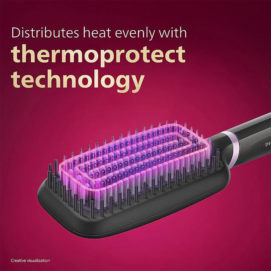 ✔ فناوری ThermoProtect: پخش یکنواخت حرارت در تمام سطح برس برای جلوگیری از داغی بیش از حد و سوختن موها.