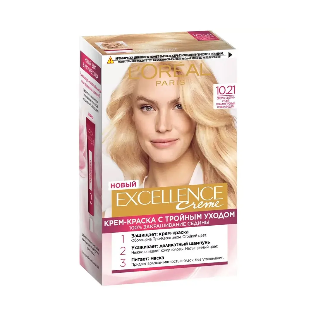 رنگ مو لورآل سری EXCELLENCE شماره ۱۰.۲۱ – بلوند مرواریدی خیلی روشن (Very Light Pearl Blonde)