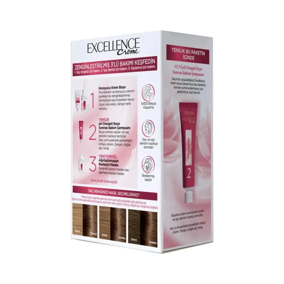 ✨ با رنگ مو لورآل EXCELLENCE، موهایی زیبا، درخشان و سالم خواهید داشت که به شما اعتماد به نفس و زیبایی بیشتری می‌بخشد!