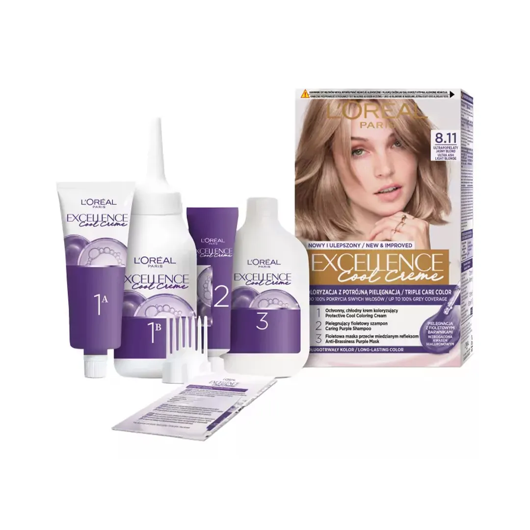 رنگ مو لورآل EXCELLENCE شماره ۸.۱۱ در طیف رنگی بلوند روشن دودی (Light Ash Blonde) قرار دارد. این رنگ دارای پایه‌ای روشن و خنثی است که با تناژ خاکستری، زردی و گرمای ناخواسته را از مو حذف می‌کند.