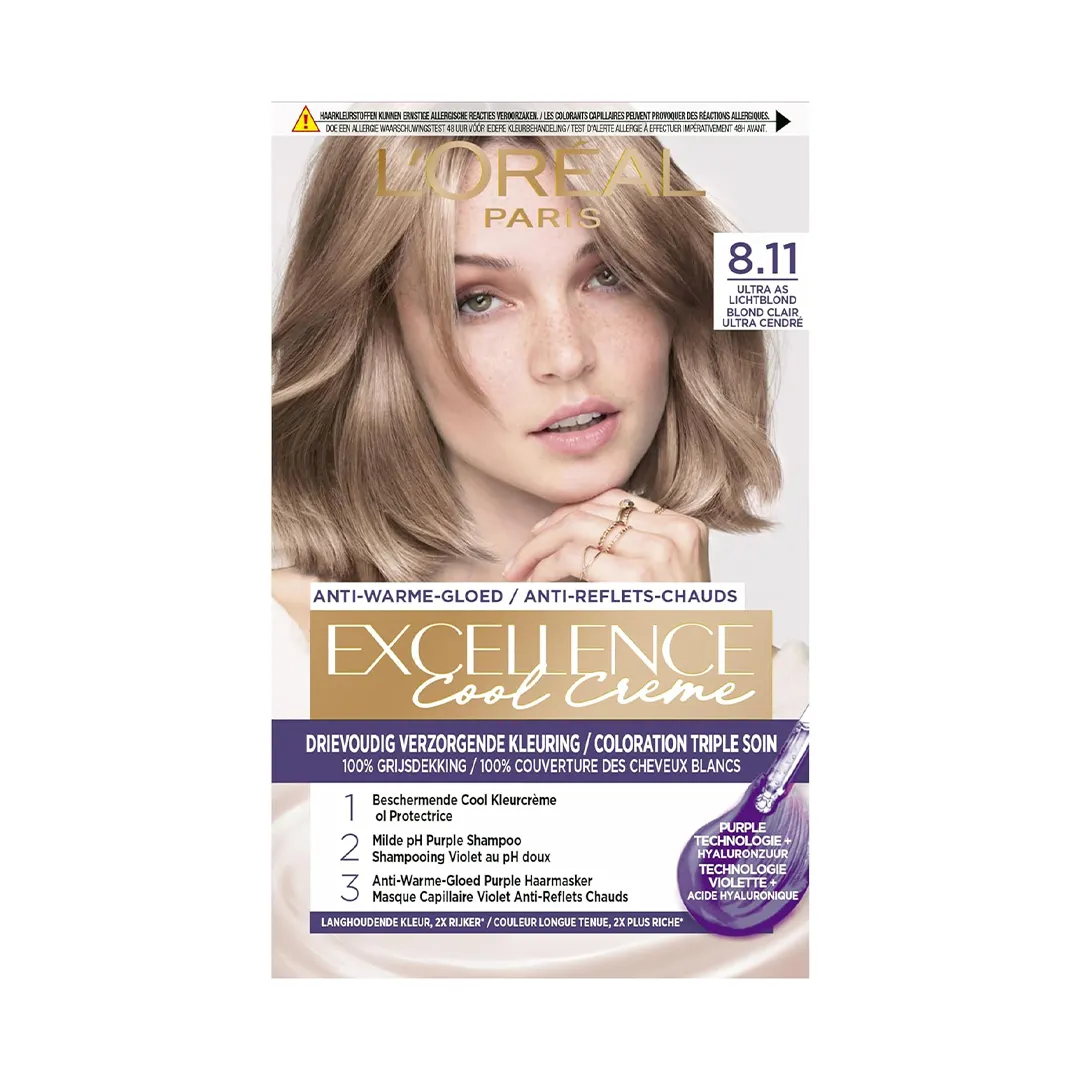 رنگ مو لورآل سری EXCELLENCE شماره ۸.۱۱ بلوند روشن دودی (Light Ash Blonde)
