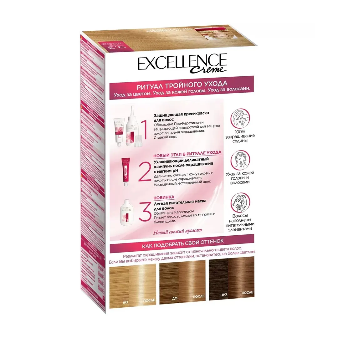فرمولاسیون سری EXCELLENCE شامل فناوری «مراقبت سه‌مرحله‌ای» است که به موها هنگام رنگ کردن محافظت، تغذیه و تقویت می‌دهد. این بدان معنی است که شما فقط رنگ نمی‌زنید، بلکه از موهای خود مراقبت می‌کنید.