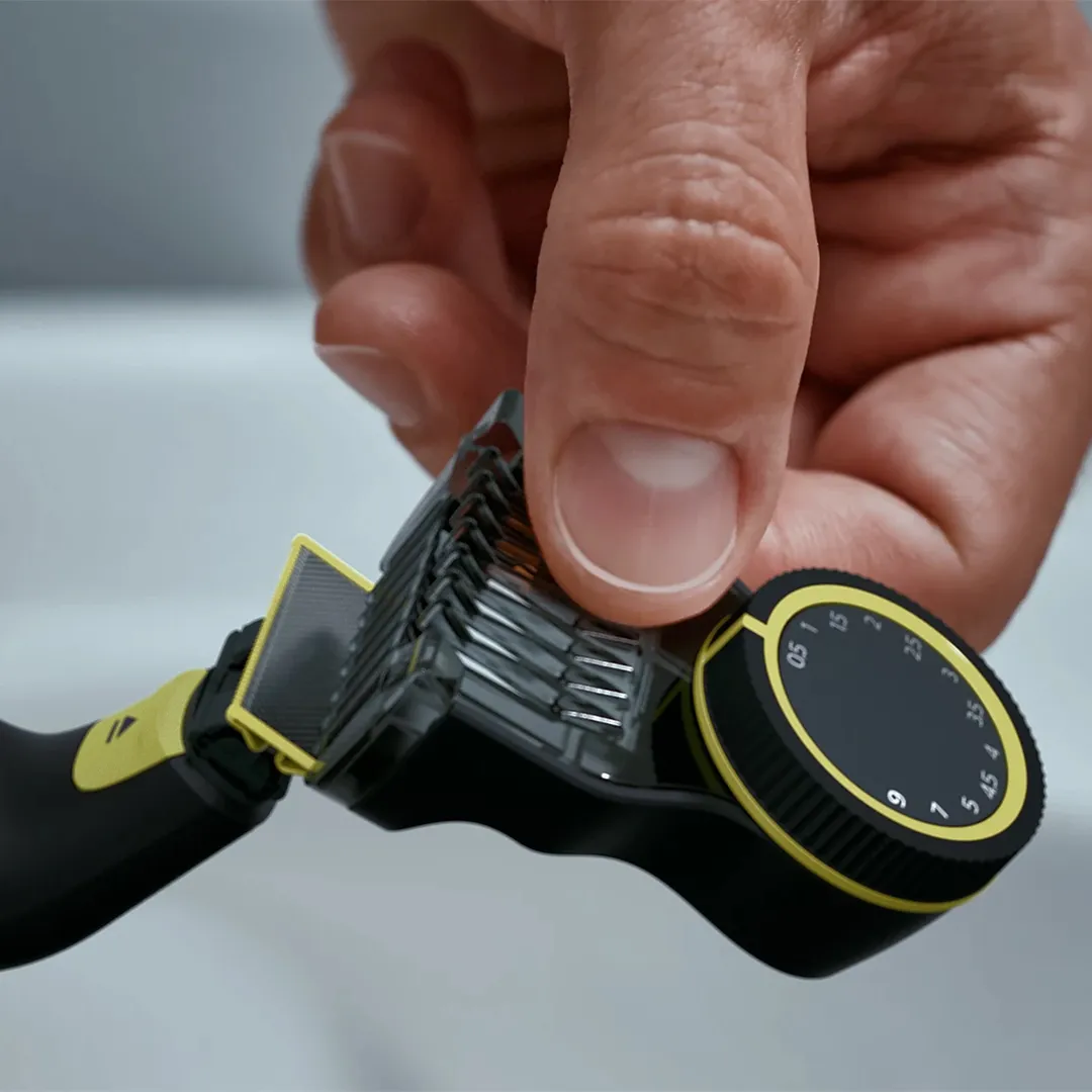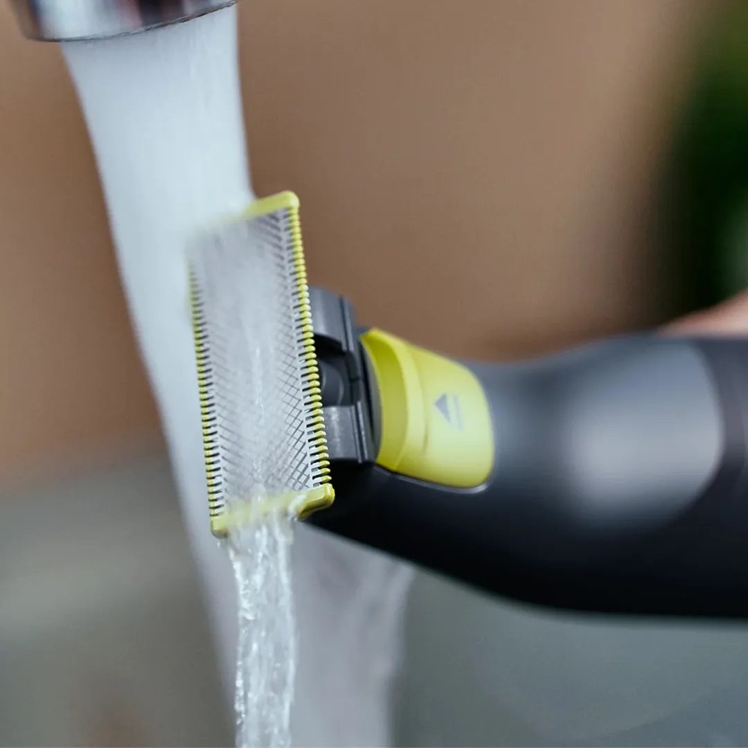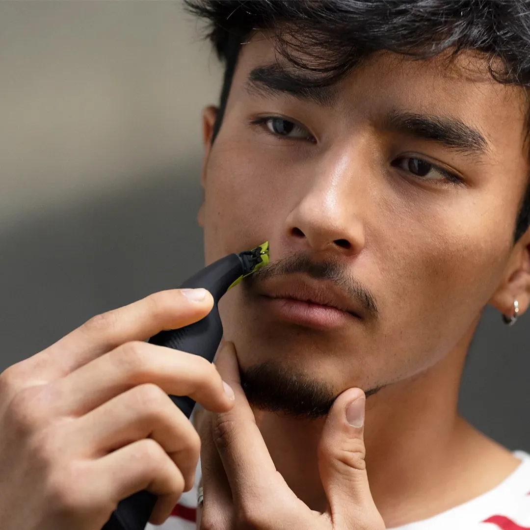 • این دستگاه از فناوری OneBlade استفاده می‌کند که تیغه‌ای دارد که حرکت سریع دارد و می‌تواند مو را کوتاه کند، خط بکشد و اصلاح کند — بدون اینکه پوست را زیاد تحریک کند.